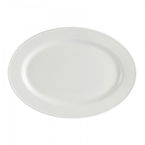 Everest Platter, 11-3/4"L x 8-1/4"W x 3/4"H, oval, glazed foot, bead edge, fully vitrified, dishwasher, oven and microwave safe, porcelain, Bone White (Sold by case)