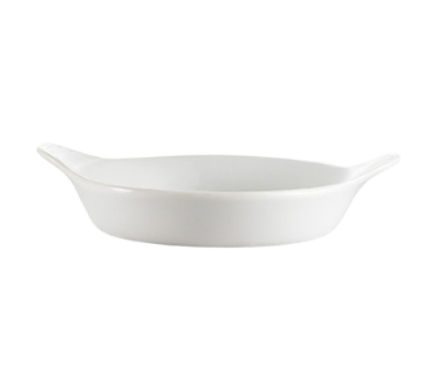 Accessories Dish, 43 oz., 12-1/4" O.L x 10" dia. x 1-3/8"H, round, with French handles, dishwasher, oven and microwave safe, porcelain, Super White (Sold by case)