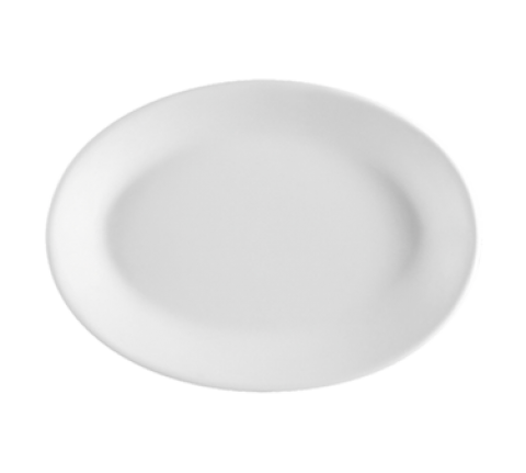 Franklin Platter, 10-5/8"L x 7"W x 1-1/8"H, oval, rolled edge, dishwasher, oven and microwave safe, stoneware (ceramic), European White (Sold by case)