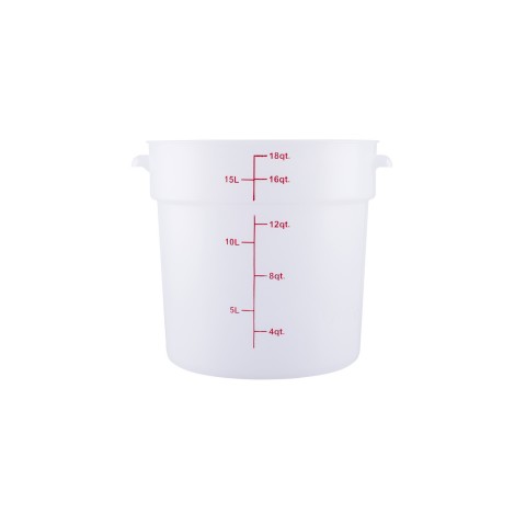 Food Storage Container, 18 qt., round, stackable, dishwasher and freezer safe, temperature resistant from -40°F/-40°C to 160°F/71°C, polypropylene, translucent, BPA free, NSF (QTY break = 6 each)