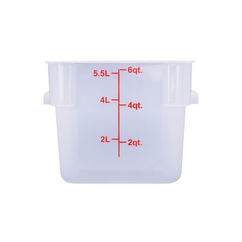 Food Storage Container, 6 qt., square, stackable, dishwasher and freezer safe, temperature resistant from -40°F/-40°C to 160°F/71°C, polypropylene, translucent, BPA free, NSF (QTY break = 12 each)