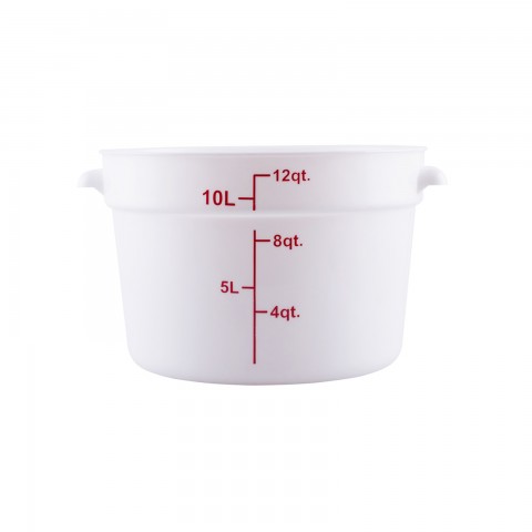Food Storage Container, 12 qt., round, stackable, dishwasher and freezer safe, temperature resistant from -40°F/-40°C to 160°F/71°C, polypropylene, white, BPA free, NSF (QTY break = 12 each)