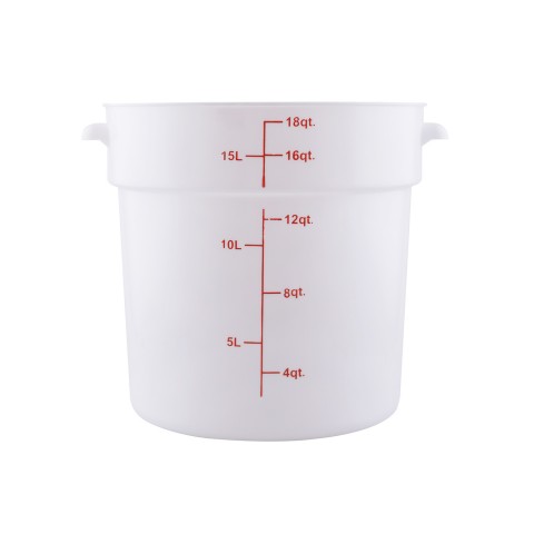 Food Storage Container, 18 qt., round, stackable, dishwasher and freezer safe, temperature resistant from -40°F/-40°C to 160°F/71°C, polypropylene, white, BPA free, NSF (QTY break = 6 each)