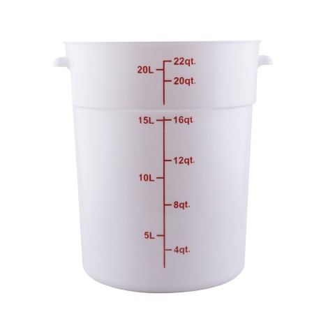Food Storage Container, 22 qt., round, stackable, dishwasher and freezer safe, temperature resistant from -40°F/-40°C to 160°F/71°C, polypropylene, white, BPA free, NSF (QTY break = 6 each)