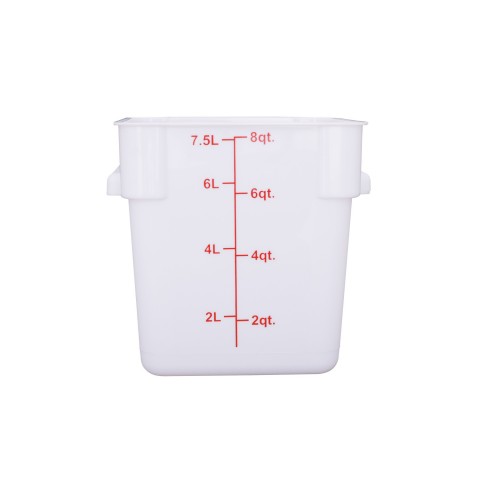 Food Storage Container, 8 qt., square, stackable, dishwasher and freezer safe, temperature resistant from -40°F/-40°C to 160°F/71°C, polypropylene, white, BPA free, NSF (QTY break = 12 each)