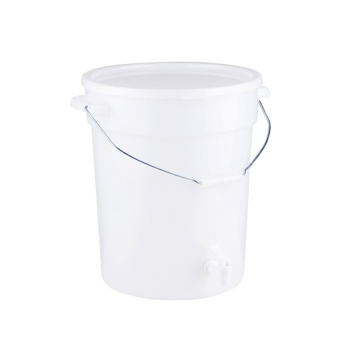 Beverage Dispenser Container, 6 gallon capacity, handle, anti-drip press faucet, snap-on lid, temperature range -40° F to 160° F, red graduations in quarts & liters, dishwasher safe, BPA free, polypropylene, white (Qty Break = 2 set)