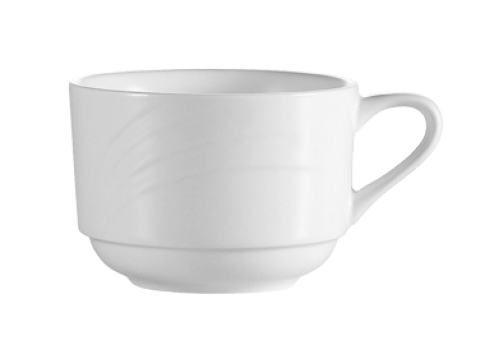 Garden State Coffee Cup, 7-1/2 oz., 3-1/2" dia. x 2-1/2"H, round, stackable, embossed, dishwasher, oven and microwave safe, porcelain, Bone White (Sold by case)