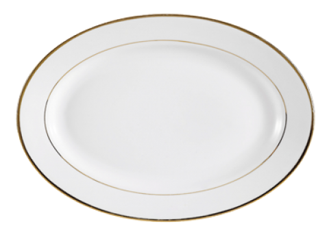 Golden Royal Platter, 12"L x 8-5/8"W x 1-3/8"H, oval, dishwasher and oven safe, porcelain, Gold Band/Super White (Sold by case)