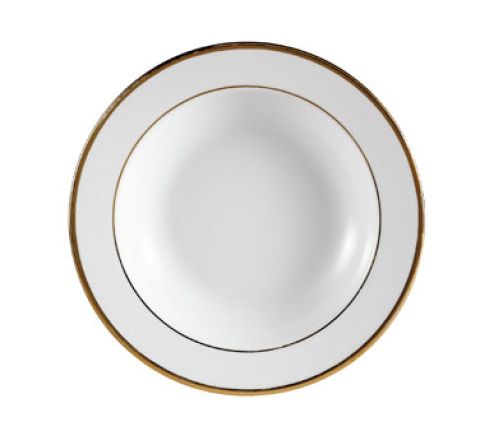 Golden Royal Soup Plate, 10 oz., 9" dia. x 1-3/8"H, round, dishwasher and oven safe, porcelain, Gold Band/Super White (Sold by case)