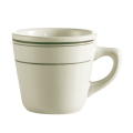 Greenbrier Coffee Cup, 7 oz., 3-1/2" dia. x 3"H, round, tall, dishwasher, oven and microwave safe, stoneware (ceramic), Green Band/American White (Sold by case)