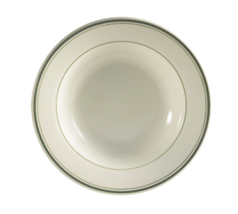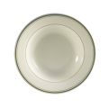 Greenbrier Pasta Bowl, 30 oz., 12-3/4" dia. x 2"H, round, dishwasher, oven and microwave safe, stoneware (ceramic), Green Band/American White (Sold by case)