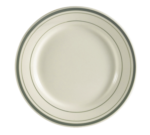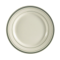 Greenbrier Plate, 6-1/4" dia. x 1/2"H, round, rolled edge, dishwasher, oven and microwave safe, stoneware (ceramic), Green Band/American White (Sold by case)