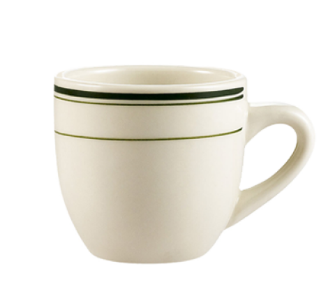 Greenbrier Demitasse Cup, 3-1/2 oz., 2-1/2" dia. x 2-1/2"H, round, dishwasher, oven and microwave safe, stoneware (ceramic), Green Band/American White (Sold by case)