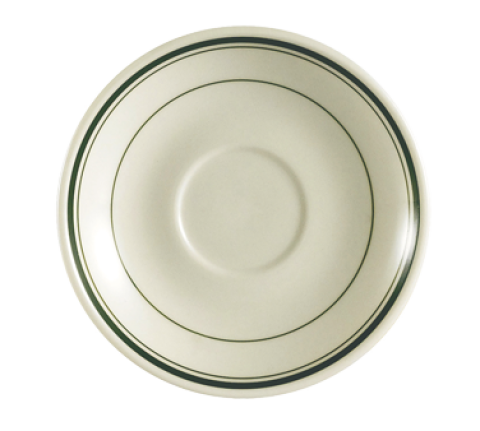 Greenbrier Saucer, 4" dia. x 3/4"H, round,dishwasher, oven and microwave safe, stoneware (ceramic), Green Band/American White (for GS-35) (Sold by case)