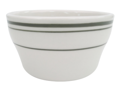Greenbrier Bouillon Cup, 7-1/4 oz., 4" dia. x 2-1/2"H, round, dishwasher, oven and microwave safe, stoneware (ceramic), Green Band/American White (Sold by case)