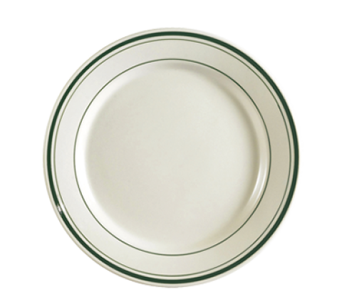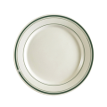 Greenbrier Plate, 9" dia. x 1"H, round, rolled edge, dishwasher, oven and microwave safe, stoneware (ceramic), Green Band/American White (Sold by case)