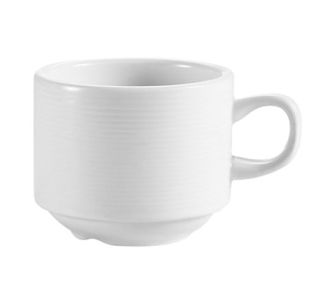 Harmony Coffee Cup, 7 oz., 3-3/4" dia. x 2-3/4"H, round, stackable, embossed, dishwasher, oven and microwave safe, porcelain, Super White (Sold by case)