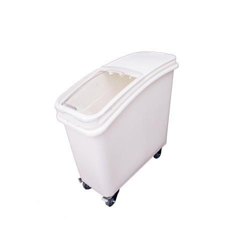 Ingredient Storage Bin, 21 gal., mobile, sliding lid, 1 scoop include, (4) 3" non-marking casters, (2) with brake, plastic, white, NSF (QTY break = 1 set)