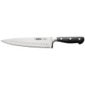 Schnell® Chef Knife, 8″, Granton edge, forged, full tang, German high-carbon steel, ice-tempered blade, black handle (QTY break = 6 each)