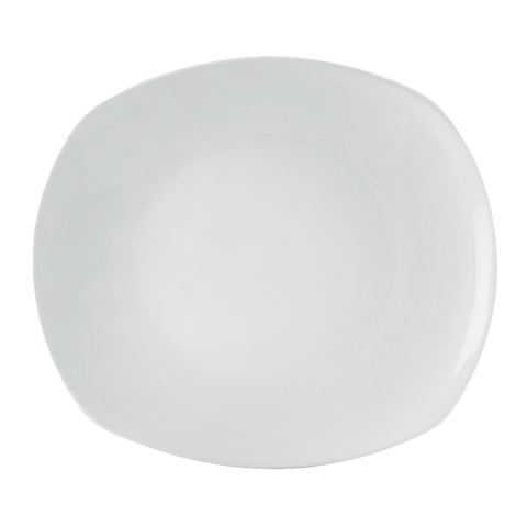 Key West Plate, 12"L x 10-1/2"W x 1-1/4"H, rectangular, curved, coupe, dishwasher, oven and microwave safe, porcelain, Super White (Sold by case)