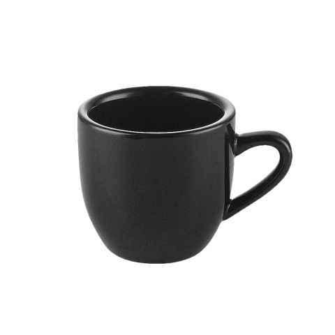 Las Vegas After Dinner Cup, tall, 3-1/2 oz., 2-1/2" dia. x 2-1/2"H, with handle, round, rolled edge, dishwasher, oven and microwave safe, stoneware (ceramic), Black (Sold by case)