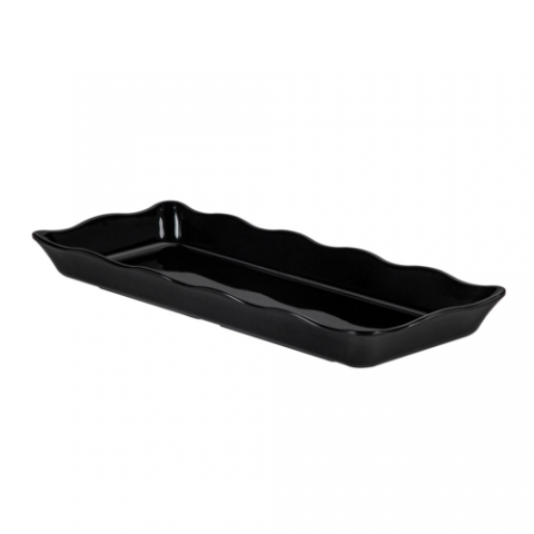 Platter, 14"W x 5-3/4"D x 1-1/2"H, rectangular, scallop edge, black (Sold by case)