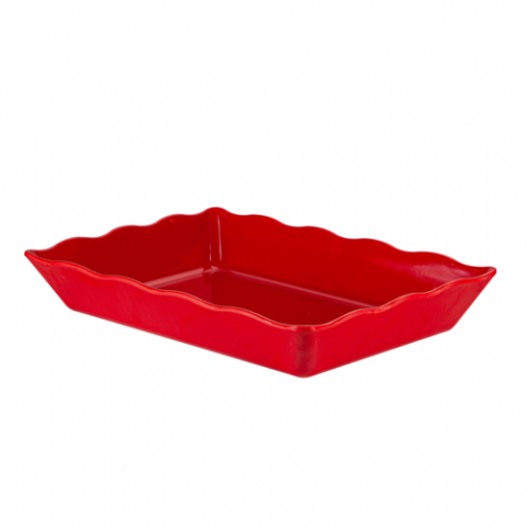 Platter, 13-3/4"W x 9-1/2"D x 2-1/2"H, rectangular, scallop edge, red (Sold by case)