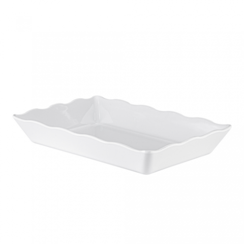 Platter, 13-3/4"W x 9"D x 2-1/2"H, rectangular, scallop edge, white (Sold by case)