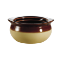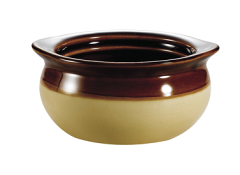 Onion Soup Crock, 10 oz., 4-5/8" dia. x 2-1/4"H, round, dishwasher, oven and microwave safe, stoneware (ceramic), Cream/Brown (Sold by case)
