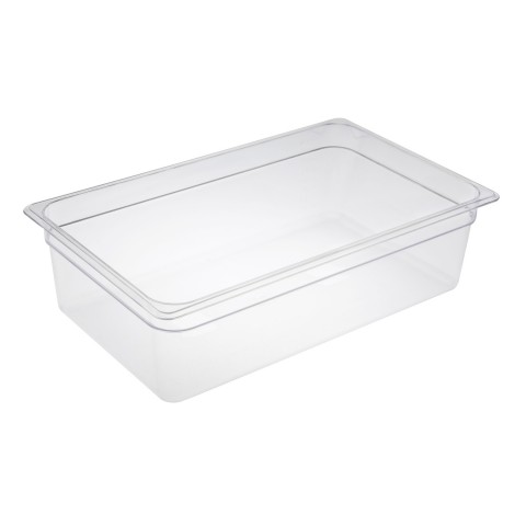 Food Pan, full-size, 6" deep, rounded corners, with smooth non-stick interior, shatter and scratch resistance, dishwasher and freezer safe, temperature resistance between -40 to 210°F polycarbonate, clear, NSF (QTY break = 6 each)
