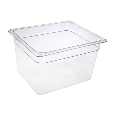Food Pan, half-size, 8" deep, rounded corners, with smooth non-stick interior, shatter and scratch resistance, dishwasher and freezer safe, temperature resistance between -40 to 210°F polycarbonate, clear, NSF (QTY break = 6 each)