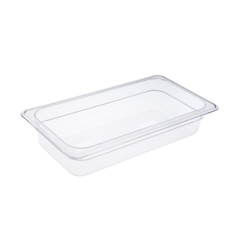 Food Pan, 1/3-size, 2-1/2" deep, rounded corners, with smooth non-stick interior, shatter and scratch resistance, dishwasher and freezer safe, temperature resistance between -40 to 210°F polycarbonate, clear, NSF (QTY break = 12 each)