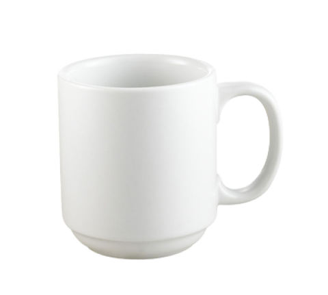 Mug Collection Prime Mug, 10 oz., 3-1/4" dia. x 3-1/2"H, round, stacking, dishwasher, oven and microwave safe, porcelain, Super White (Sold by case)