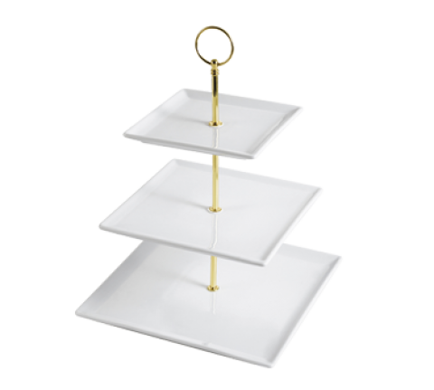 Catering Collection Serving Tray, 3-tier, includes: (1) 10"L x 10"W base tier, (1) 8"L x 8"W middle tier and (1) 6-1/4"L x 6-1/4"W top tier, 14"H, square, dishwasher, oven and microwave safe, porcelain, Super White (Sold by case)