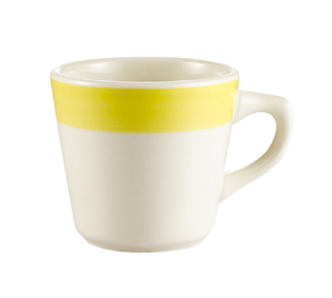 Rainbow Coffee Cup, 7-1/2 oz., 3-1/4" dia. x 3"H, round, dishwasher, oven and microwave safe, stoneware (ceramic), Yellow (Sold by case)