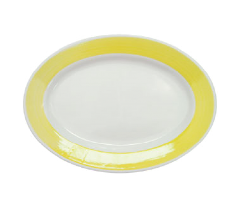 Rainbow Platter, 10-3/8"L x 7-1/8"W x 1-1/4"H, oval, rolled edge, dishwasher, oven and microwave safe, stoneware (ceramic), Yellow (Sold by case)