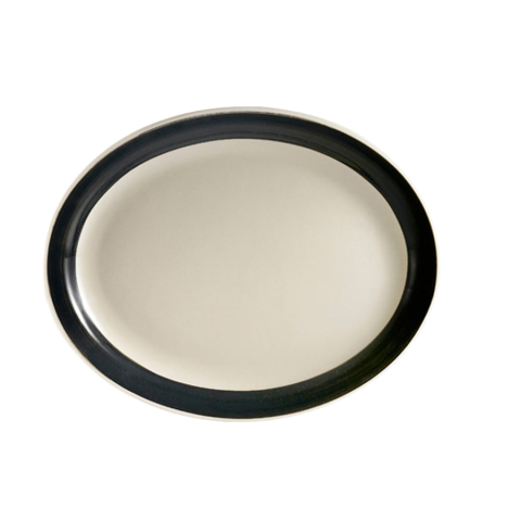 Rainbow Platter, 13-1/2"L x 10-1/8"W x 1-1/2"H, oval, narrow rim, dishwasher, oven and microwave safe, stoneware (ceramic), Black (Sold by case)