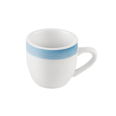 Rainbow A.D Cup, 3-1/2 oz., 2-1/2" dia. x 2-1/2"H, round, dishwasher, oven and microwave safe, stoneware (ceramic), blue/American White (Sold by case)