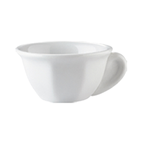 Clinton Demitasse Cup, 3 oz., 3-1/8" dia. x 1-5/8"H, round, with moon shaped handle, dishwasher, oven and microwave safe, porcelain, Super White (Sold by case)