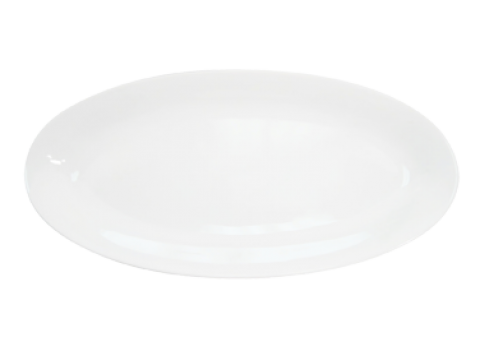 RCN Specialty Fishia Platter, 18"L x 8-1/4"W x 1-1/2"H, oval, dishwasher, oven and microwave safe, porcelain, Super White (Sold by case)
