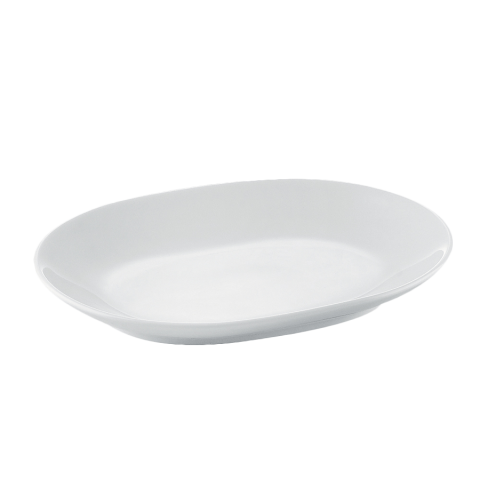 RCN Specialty D-End Platter, 9-7/8"L x 7-1/2"W x 1"H, oblong, coupe, dishwasher, oven and microwave safe, porcelain, Super White (Sold by case)