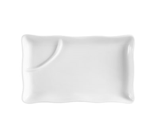 Accessories Platter, 10-1/8"L x 6-1/4"W x 1"H, rectangular, with sauce compartment, dishwasher, oven and microwave safe, porcelain, Super White (Sold by case)