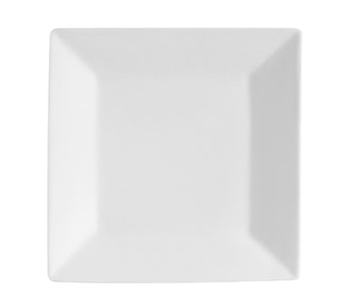 RE Plate, 8"L x 8"W x 3/4"H, square, dishwasher, oven and microwave safe, square pattern, stoneware (ceramic), American White (Sold by case)