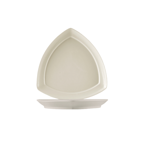 REC Plate, 12"L x 12"W x 1-1/8"H, triangular, dishwasher, oven and microwave safe, stoneware (ceramic), American White (Sold by case)
