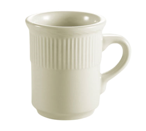 Ridgemont Mug, 8 oz., 3-1/8" dia. x 3-3/4"H, round, tall, embossed, dishwasher, oven and microwave safe, stoneware (ceramic), American White (Sold by case)