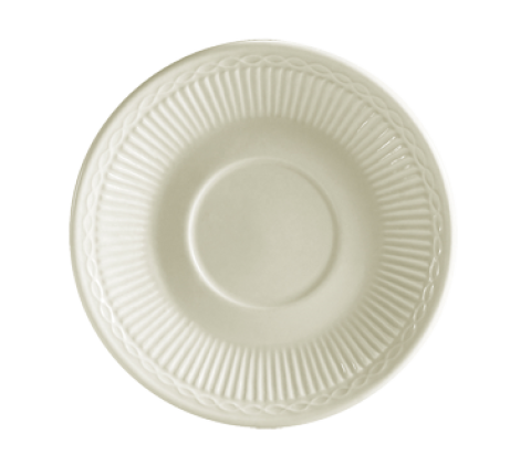 Ridgemont Saucer, 5-3/8" dia. x 7/8"H, round, embossed, dishwasher, oven and microwave safe, stoneware (ceramic), American White (for RID-1, RID-17 and RID-4) (Sold by case)