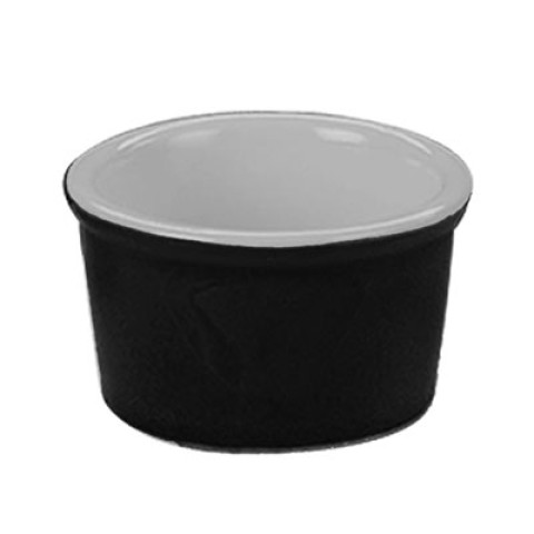 RKF Ramekin, 2-1/2 oz., 2-7/8" dia. x 1-1/2"H, round, dishwasher, oven and microwave safe, stoneware (ceramic), Black/American White (Sold by case)