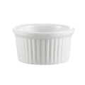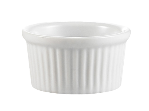 RKF Ramekin, 3 oz., 3" dia. x 1-1/2"H, round, fluted, dishwasher, oven and microwave safe, porcelain, Super White (Sold by case)
