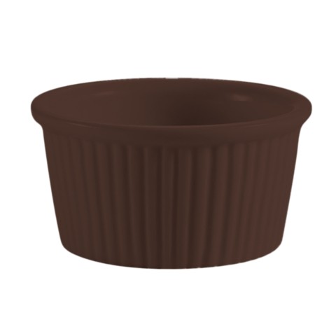RKF Ramekin, 4 oz., 3-1/8" dia. x 1-1/2"H, round, fluted, dishwasher, oven and microwave safe, stoneware (ceramic), Brown (Sold by case)