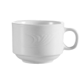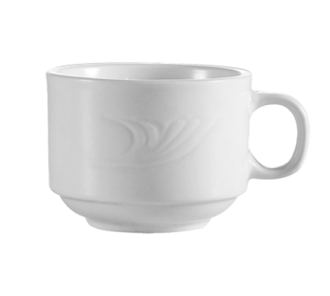 Roosevelt Coffee Cup, 8 oz., 3-1/2" dia. x 2-1/2"H, round, stacking, embossed, dishwasher, oven and microwave safe, porcelain, Super White (Sold by case)
